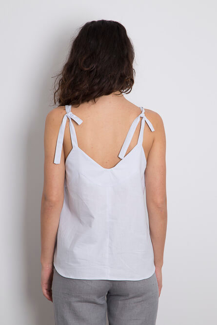 Anterior Siguiente TOP CALPE NUBE (Altura de la modelo: 1.80 m – la modelo lleva la talla S en la foto) Top de algodón con tirantes. Largo por la cintura y silueta ligeramente evasé. ¡Los tirantes son ajustables para que puedas elegir el escote que quieras! 60 € Añadir al carrito